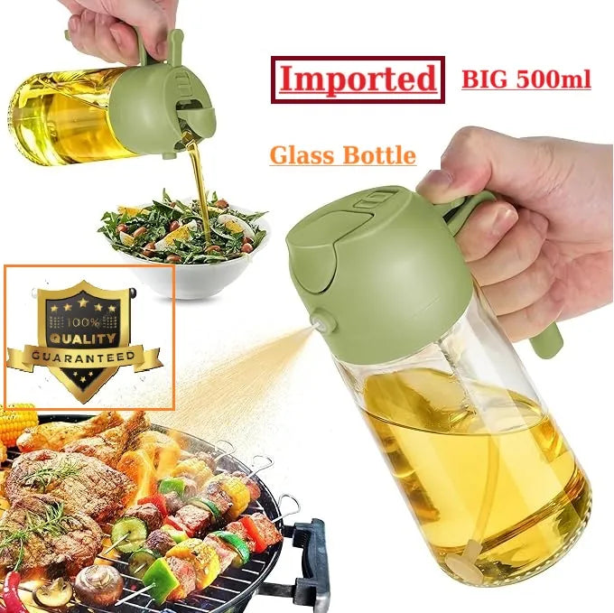 Upgrade your kitchen game with the 2-in-1 Olive Oil Spray Dispenser Bottle – the perfect combo of precision and convenience! Whether you're air frying, grilling, baking, or tossing up a fresh salad, this smart glass bottle lets you switch between pouring and spraying oil in seconds. It's mess-free, easy to use, and made from food-grade materials for safe, healthy cooking.
